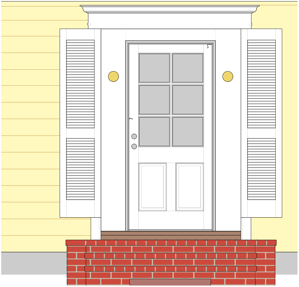 at the actual house. The next 2 drawings (1 pixel = ½ inch) are front and side elevations of the recessed front door &